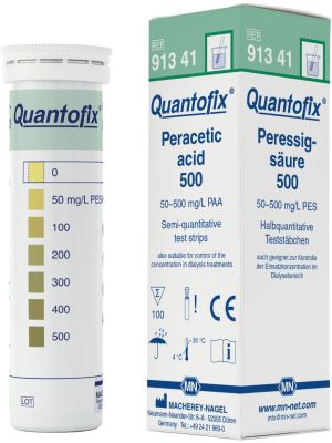 Learn MoreSemi-quantitative test strips for the determination of Peracetic acid. Ideal for rapid and easy analysis of Peracetic acid directly on-site. Can be used with test strip reader QUANTOFIX Relax. CE-certified according to the directive for medical products 93/42/EWG