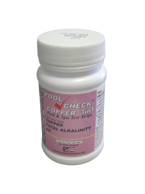 Learn MorePool and Spa test strips for determining copper, total alkalinity and pH. Bottle of 50 strips. Pool Check® Copper 3in1 is the world's first test strip designed to measure Copper sanitizer levels used in alternative sanitizing systems (for both liquid and granule copper sulfate pentahydrate and ionizing systems). Combined with pH and Total Alkalinity readings, Pool Check® Copper 3in1 satisfies your testing needs where others fall short.